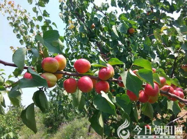 杏府生態(tài)園如今已經(jīng)建起了農(nóng)業(yè)合作社,遠(yuǎn)遠(yuǎn)望見“立豐合作社”的牌匾在陽光下愈加醒目。 一行人迫不可待地下車,沿著爬滿葡萄藤蔓的長廊快步往上走,“123蘋果園”、“桑果園”、“桃園”、“文冠果園”,一片生機(jī)。最多的還是面積約100畝、擁有各種嫁接新品種的杏樹園,都是聘請果樹專家引進(jìn)食用杏樹種在山杏樹上嫁接而成的,有金太陽杏、麥黃杏和大紅袍杏等各種杏樹近6000棵。 眼下正是采摘杏果的時(shí)節(jié),坡上坡下滿樹大大小小的串串杏果,吸引著眾人的眼球。
