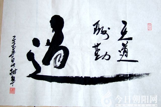 其次得益于王樹(shù)軍先生的想象力和創(chuàng)造力。王樹(shù)軍是個(gè)十分有心、用心綿密之人,這為他創(chuàng)作出絕妙的書(shū)畫同體作品創(chuàng)造了先天的條件。西漢文學(xué)家揚(yáng)雄早就說(shuō)過(guò):“書(shū)為心畫。”是也,能把二者結(jié)合起來(lái)創(chuàng)作出高水準(zhǔn)的作品,必然是一個(gè)相當(dāng)細(xì)心并且具有很高人格力量之人才能做到。同時(shí),王樹(shù)軍先生有著非凡的想象力和創(chuàng)造力。這與他是一個(gè)作家和小說(shuō)家有關(guān)。一個(gè)小說(shuō)家必定有十分出色的想象力和創(chuàng)造力,否則他絕不可能寫出小說(shuō)來(lái)。王樹(shù)軍先生在書(shū)法中揉進(jìn)繪畫藝術(shù),則無(wú)疑更需要想象力和創(chuàng)造力。為什么會(huì)把“示”字想象成一個(gè)童子,把“畐”字想象成一位母親,真真不是常人所可以想象得出來(lái)的。正是王樹(shù)軍超高的想象力和創(chuàng)造力,從而使得他的書(shū)畫同體作品“不是詩(shī)卻有詩(shī)的韻味,它不是畫卻有畫的美感,它不是舞卻有舞的節(jié)奏,它不是歌卻有歌的旋律”(魯迅語(yǔ))。