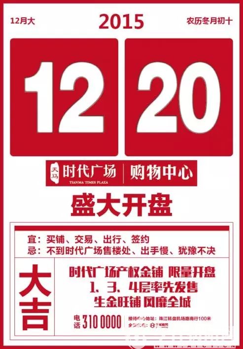 時代廣場產(chǎn)權金鋪12月20日限量開盤啦!1、3、4層率先發(fā)售!數(shù)量有限,搶鋪要抓緊哦!