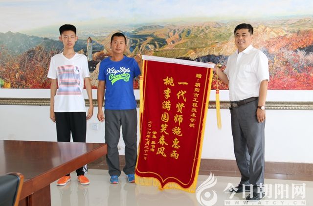 編者按:在朝陽工程技術(shù)學(xué)校校長武鐵兵辦公室的墻上,赫然掛著兩面新錦旗,一面旗上寫著:一代賢師施惠雨,桃李滿園笑春風(fēng)。一面寫著:今日恩師教誨,明日學(xué)子成才 。武校長告訴小編,這兩面錦旗都是今年高考生家長送的。當(dāng)時,高考錄取通知下發(fā)不久,兩位家長迫不及待找到學(xué)校,興奮地送上錦旗以表達無以言表的感激之情。家長們?yōu)槭裁催@么激動,這錦旗后面又有怎樣的故事?最近,小編采訪了兩位學(xué)生……