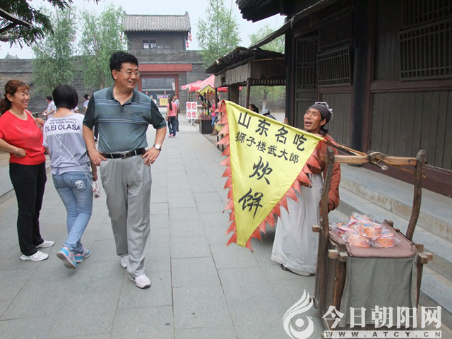 下午,我們興致勃勃地游覽了水滸城。水滸城是為新版《水滸傳》而建,據(jù)說耗資幾億元,這里除了拍水滸外,還拍了十幾部影視劇?,F(xiàn)在,這城已經(jīng)成為東平縣著名的旅游景點(diǎn)。武大郎的炊餅等也成為特色旅游食品。游覽時(shí),正趕上潘金蓮招親儀式。真想去接潘金蓮拋來的繡球。