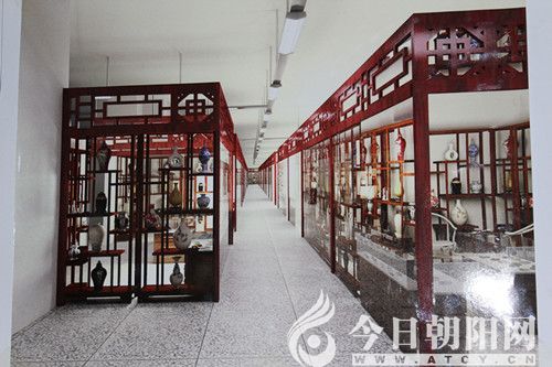 偌大的展廳,古樸典雅,分上下兩層,長(zhǎng)長(zhǎng)走廊兩側(cè)設(shè)八十一個(gè)廳位,以紅山文化為主線軸的廳位,分別展示和經(jīng)營(yíng)古代、近代、現(xiàn)代不同時(shí)期、不同年代各式真品仿造品舊物,總類達(dá)一萬(wàn)八千多件。