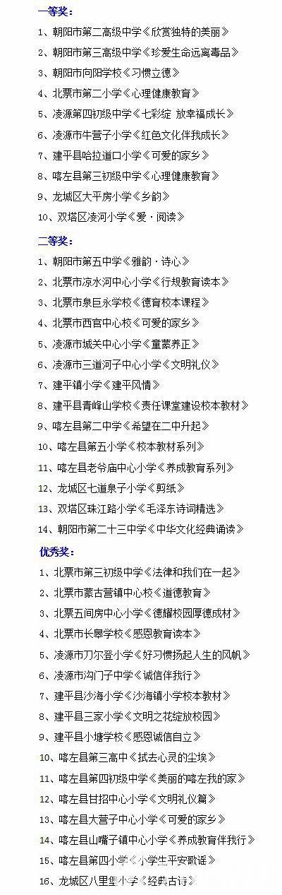 ——朝陽市中小學(xué)首屆優(yōu)秀德育校本課程評選活動通報