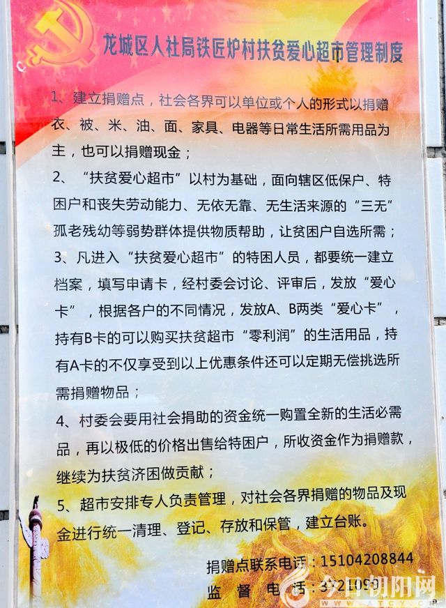 龍城區(qū)人社局與七道泉子鎮(zhèn)鐵匠爐村是幫扶對(duì)子,為使村民們?cè)缛者^上富足甜美的好日子,該局黨員干部多措并舉,熱心幫助村民增收致富。“扶貧愛心超市”以村為基礎(chǔ),面向轄區(qū)低保戶、特困戶和喪失勞動(dòng)能力、無依無靠、無生活來源的“三無”孤老殘幼等弱勢(shì)群體提供物質(zhì)幫助,降低貧困戶生活成本,讓貧困戶自選自需。
