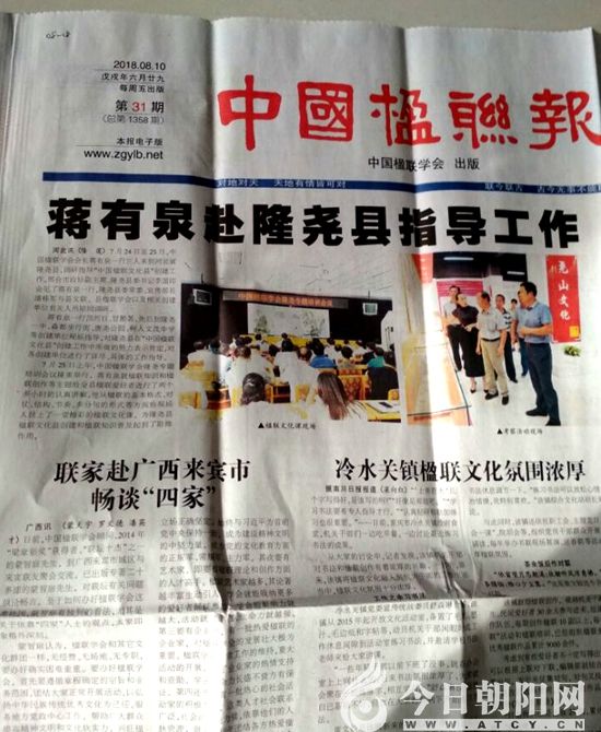 我沒(méi)到過(guò)隆堯,但一看到隆堯倆字,一聽(tīng)到隆堯這個(gè)縣名,就格外親切。瀏覽今年8月10日《中國(guó)楹聯(lián)報(bào)》,1版頭條大字標(biāo)題《蔣有泉赴隆堯縣指導(dǎo)工作》赫然入目。蔣先生是中國(guó)楹聯(lián)學(xué)會(huì)會(huì)長(zhǎng),7月24日至25日到隆堯調(diào)研指導(dǎo)“中國(guó)楹聯(lián)文化縣”創(chuàng)建工作,曾來(lái)到創(chuàng)建單位之一的隆堯一中考察指導(dǎo)。