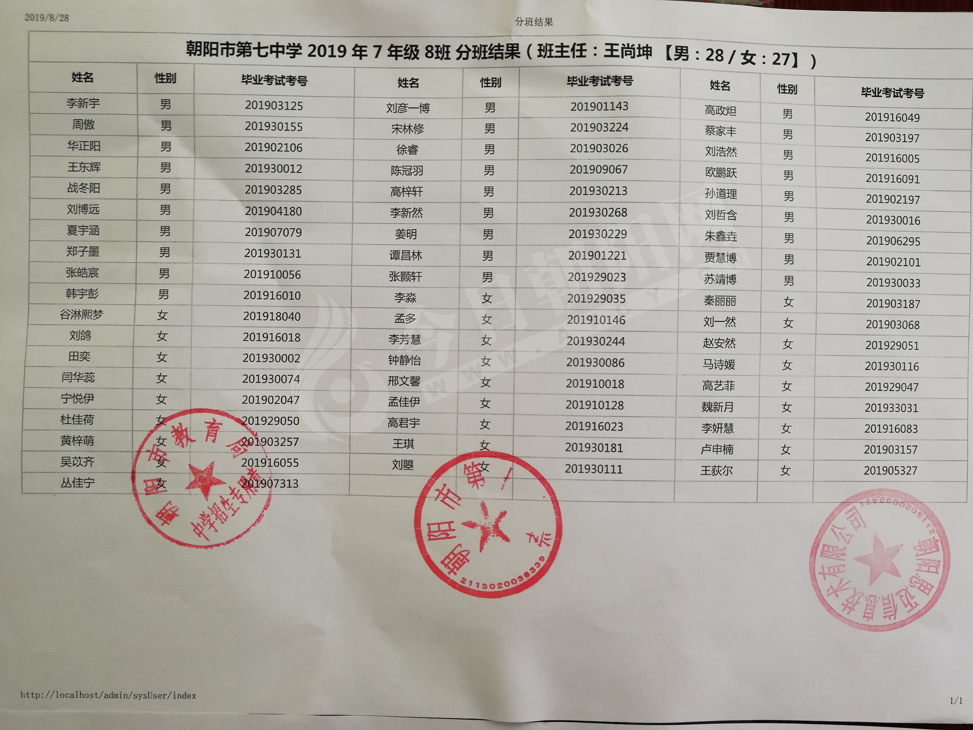 家長速看!朝陽市三中教育聯(lián)盟2019年新生分班表