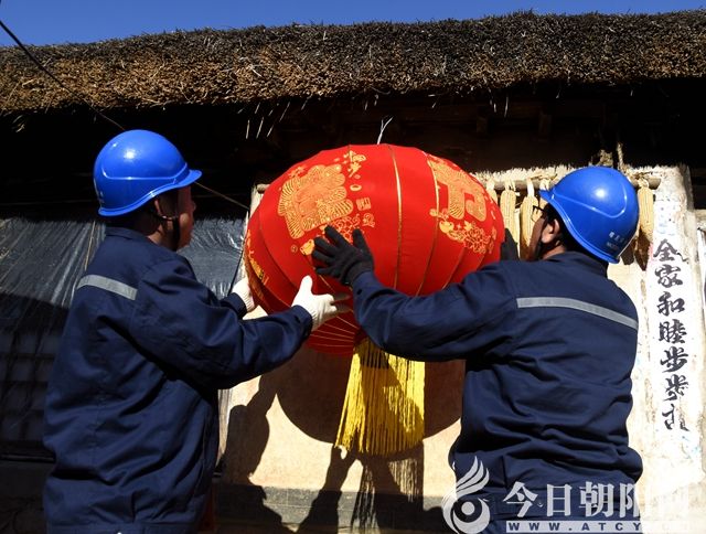 1月15日上午,在庚子鼠年春節(jié)即將到來之際,國網(wǎng)喀左縣供電公司公營子供電所幾位工作人員來到遼寧省電力有限公司定點幫扶省級貧困村——公營子鎮(zhèn)五家村,為樂壽古村落檢查用電線路,并為住在古村落茅草房里的農(nóng)戶掛上了紅彤彤的大燈籠。