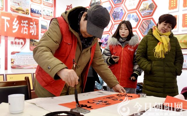 “老師,你看我們家是開超市的,給寫一副啥對聯(lián)好呢?”1月15日上午,國網(wǎng)朝陽供電公司服務(wù)一黨總支組織10位書法家和書法愛好者,來到公司定點扶貧村——喀左縣公營子鎮(zhèn)五家村,為鄉(xiāng)親們義務(wù)寫、送春聯(lián)?;顒蝇F(xiàn)場,村民姚德喜興致勃勃地發(fā)問。聽了他的話,一位書法家略加思索,揮筆為他寫下了“店小貨全名氣大,價廉物美客人多”的對聯(lián),讓姚德喜笑逐顏開。