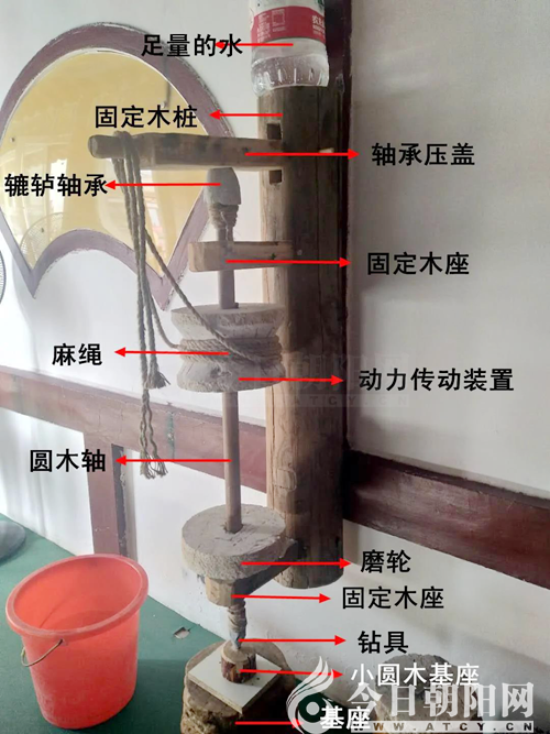 我們幾個志愿者分成幾組,各有分工,承拉麻繩是個力氣活,通過拉扯動力傳動裝置帶動磨輪轉(zhuǎn)動,我們每人拉200下然后換人,這樣能保證速度;控制水量是個簡單工作,沒有技術(shù)難度,只要在需要的時候保證供應(yīng)即可;真正的工匠是打磨的人。需要控制住石斧的位置,還要隨時調(diào)整角度對石斧進(jìn)行琢磨。原本看著那磨輪不怎么起眼,可是一上手發(fā)現(xiàn)它它的威力還真不小。坑坑洼洼的石斧在磨輪的打磨下很快就變得光滑了。磨輪帶著水線,琢磨著石斧。我們每個人都體驗了一次如何做工匠。