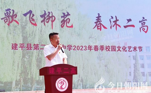 校黨委書記李樹杰代表校黨委,向藝術(shù)節(jié)的成功舉辦表示熱烈的祝賀。他指出,“歌飛柳苑 春沐二高”,其寓意既包含了對(duì)二高蓬勃向上發(fā)展的殷切期望,也寄托了對(duì)高三學(xué)子參加高考再創(chuàng)佳績(jī)的深切祝福。今天的演出,希望你們充分展示自己的靚麗風(fēng)采和青春活力,在舞臺(tái)上盡情演繹多彩的人生,去揮灑青少年獨(dú)有的激情、彰顯特有的魅力。愿我們的校園,時(shí)時(shí)飄蕩著快樂的歌聲,處處散發(fā)著藝術(shù)的芬芳,始終洋溢著蓬勃的朝氣。