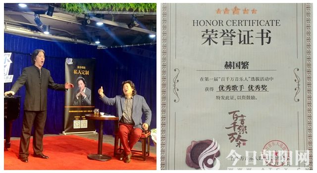 赫國繁,朝陽市音樂家協(xié)會理事,朝陽知名男中音歌手。他酷愛唱歌,無論是在部隊當(dāng)兵還是復(fù)員后參加工作,從沒間斷。為了提升自己的演唱水平和鑒賞能力,赫國繁參加過朝陽市舉辦的各種聲樂培訓(xùn)班,還經(jīng)常去北京或其他城市觀看音樂會。2010年5月,他參加了朝陽“新人新作”暨遼寧省新人新作聲樂選拔賽,獲朝陽賽區(qū)銀獎;參加遼寧省“新人新作”(聲樂)大獎賽決賽,榮獲美聲唱法優(yōu)秀歌手獎。