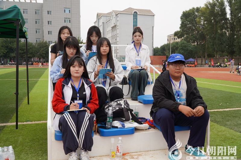 看臺上,同學(xué)們的歡呼聲、加油聲此起彼伏。每一次沖刺、每一次跳躍、每一次投擲都牽動著大家的心。志愿者們在賽場內(nèi)外忙碌著,為運動員們提供及時的服務(wù);裁判員們專注地記錄著比賽成績,確保比賽公正、有序進行。