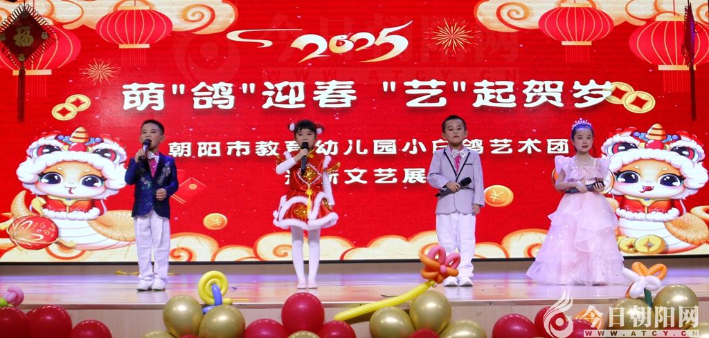 1月8日上午,遼寧省朝陽(yáng)市教育幼兒園內(nèi)節(jié)日氛圍濃厚,小白鴿藝術(shù)團(tuán)“萌‘鴿’迎春 ‘藝’起賀歲”迎新文藝展演活動(dòng)在幼兒園多功能廳華麗啟幕。園領(lǐng)導(dǎo)班子成員、小白鴿藝術(shù)團(tuán)的教師、幼兒及其家長(zhǎng)們歡聚一堂,共享這一藝術(shù)盛宴。展演活動(dòng)通過視頻同步轉(zhuǎn)播至全園的24個(gè)班級(jí),讓未能到場(chǎng)的師幼同享這份喜悅。